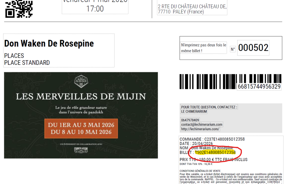 Pour se faire, remplissez le formulaire ci-dessus, en prenant soin de renseigner votre numéro de billet complet (voir capture ci-contre).